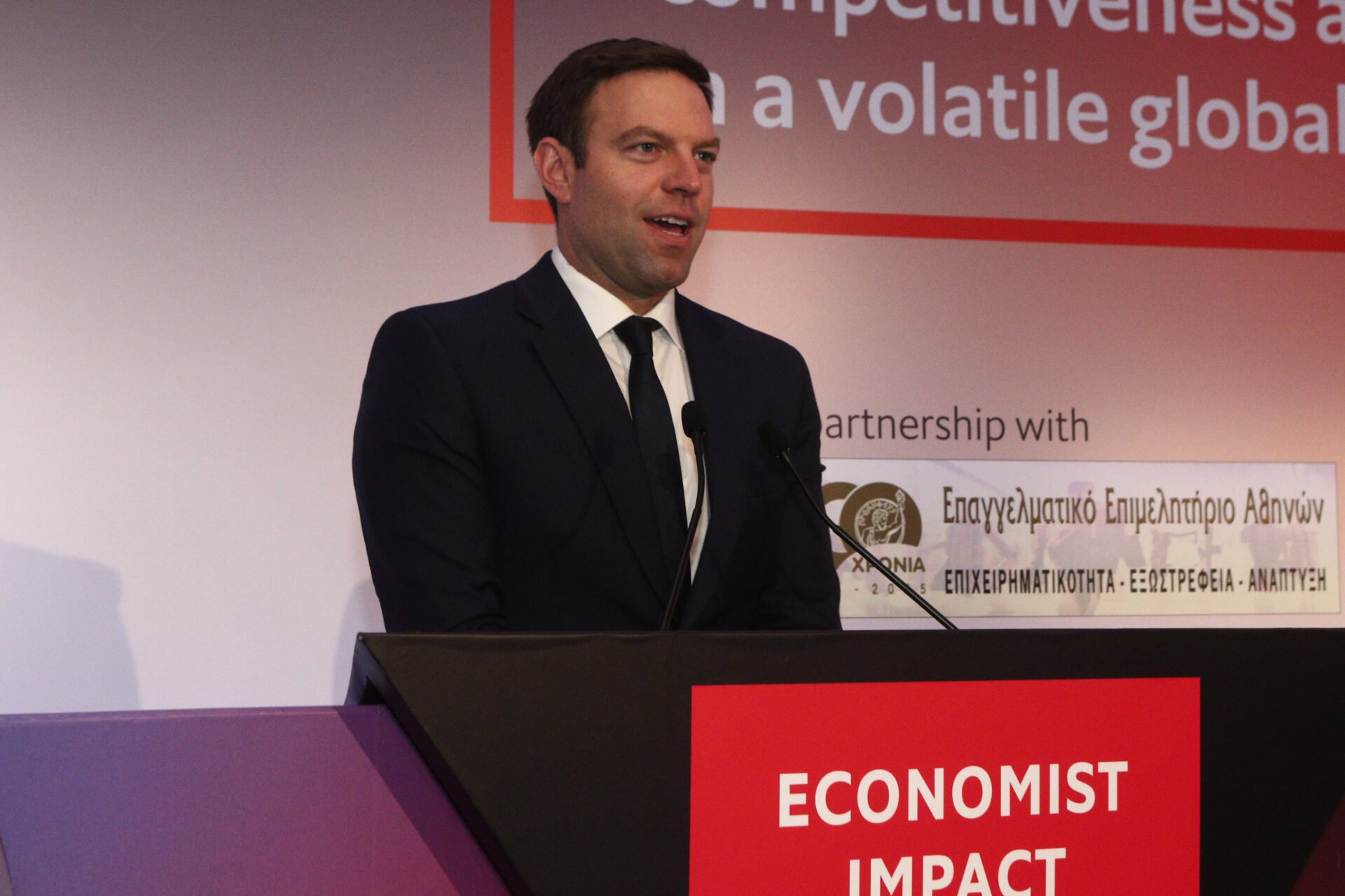 Μιλώντας στο συνέδριο του Economist και του ΕΕΑ, ο πρόεδρος του Κινήματος Δημοκρατίας, Στέφανος Κασσελάκης, αναφέρθηκε στην ανάγκη ενίσχυσης των μικρομεσαίων επιχειρήσεων. Όπως τόνισε, η παρουσία τόσων πολλών υπουργών δεν συμβάλλει στην επιχειρηματικότητα. Διατύπωσε την άποψη ότι απαιτείται μια σταθερή κρατική παρουσία, με ξεκάθαρους κανόνες και πολιτικούς που θα εστιάζουν στις βασικές υπηρεσίες όπως Υγεία, Παιδεία και Ασφάλεια.
