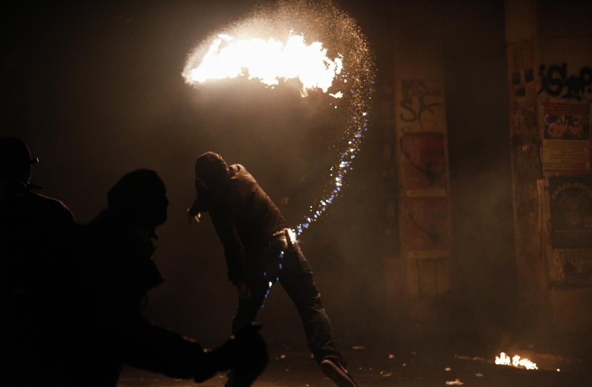 Περίπου δέκα λεπτά αργότερα, μια ομάδα ατόμων επιτέθηκε με βόμβες μολότοφ σε μονάδα των ΜΑΤ στην οδό Χαριλάου Τρικούπη, ενώ ένα όχημα κάηκε ολοσχερώς στη συμβολή των οδών Διδότου και Χ. Τρικούπη.