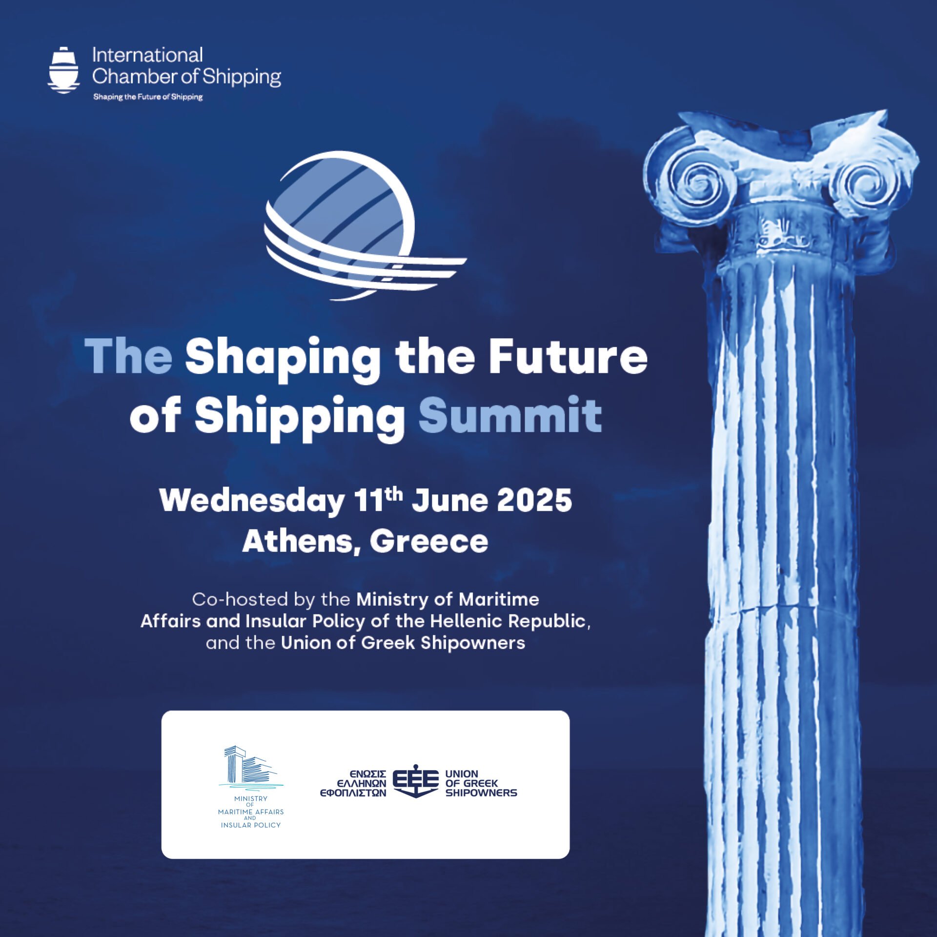 Το Υπουργείο Ναυτιλίας και Νησιωτικής Πολιτικής, το Διεθνές Ναυτικό Επιμελητήριο (ICS) και η Ένωση Ελλήνων Εφοπλιστών (ΕΕΕ) συνδιοργανώνουν στην Αθήνα τη Ναυτιλιακή Σύνοδο Κορυφής με τίτλο «Shaping the Future of Shipping Summit: Navigating global megatrends, mitigating risk and the role of shipping in delivering economic security and prosperity», στο Ωδείο Αθηνών, στις 11 Ιουνίου 2025.