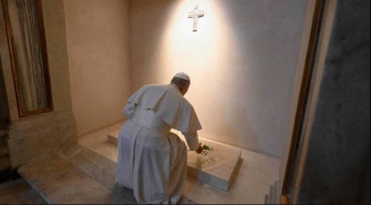 Το Σάββατο, μια ημέρα πριν την πρώτη του δημόσια εμφάνιση, ο Λέων ΙΔ’ προσευχήθηκε στον τάφο του πάπα Φραγκίσκου στη Βασιλική της Σάντα Μαρία Ματζόρε.