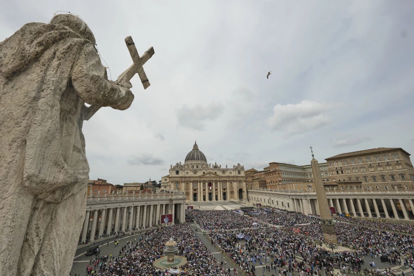 Το πρωί της Κυριακής, πλήθος προσκυνητών, πιστών, κατοίκων της Ρώμης και τουριστών κατέκλυσε την πλατεία του Αγίου Πέτρου, με φιλαρμονικές ορχήστρες να δημιουργούν μια εορταστική ατμόσφαιρα.