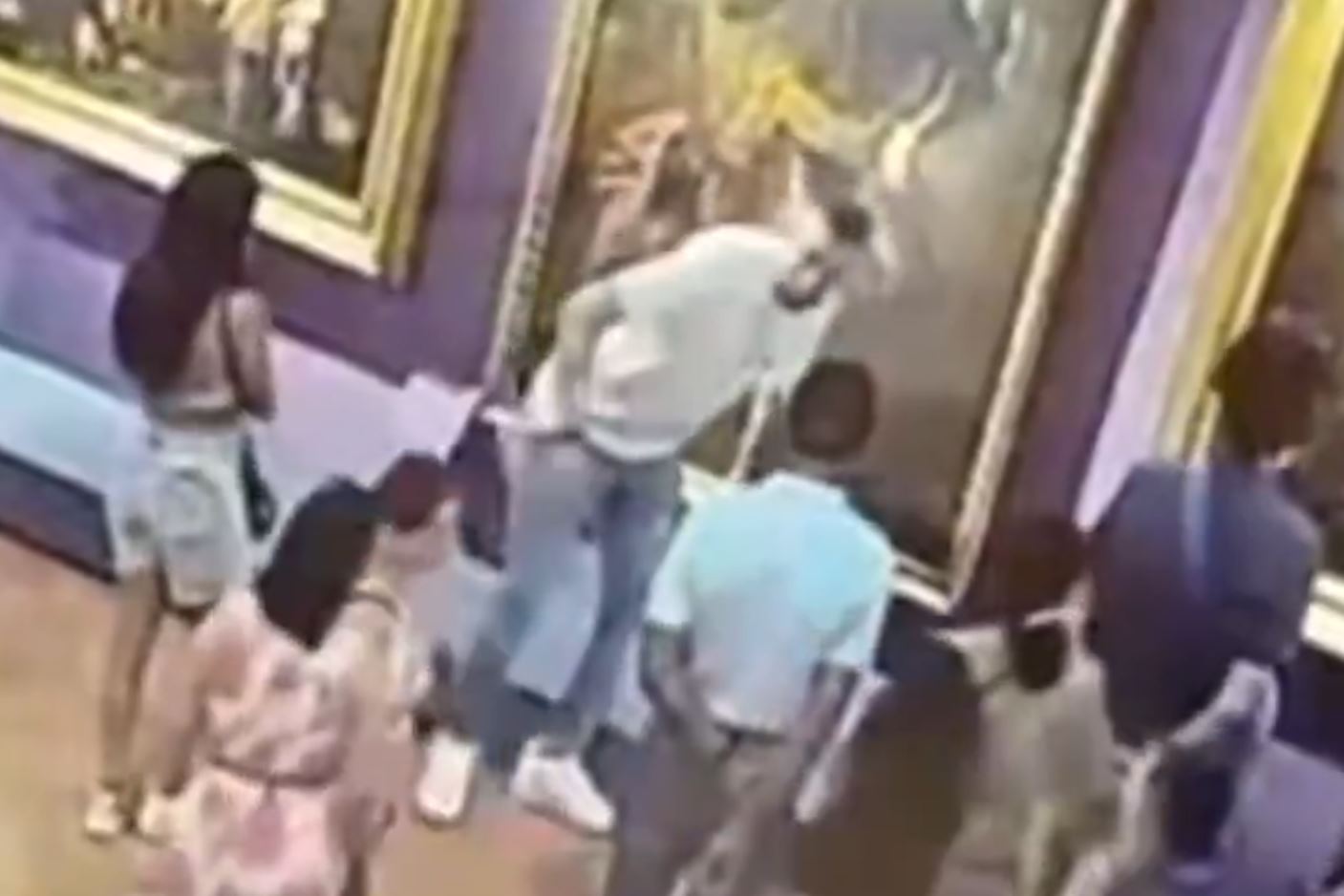 Το περιστατικό καταγράφηκε από κάμερα ασφαλείας, όπου φαίνεται ο άνδρας να προσπαθεί να μιμηθεί τη στάση του εικονιζόμενου, ενός έργου του 1712 από τον Anton Domenico Gabbiani.